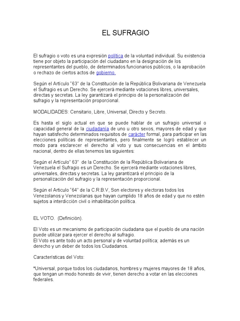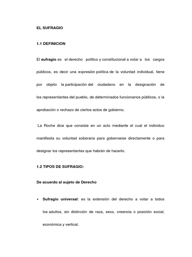 Definición y etimología de sufragio. El sufragio es considerado hoy en día como uno de los elementos políticos y sociales más importantes de las sociedades occidentales ya que es el medio a través del cual el. El sufragio es un sistema de votación, acordado por el gobierno de un país, para elección de todos los cargos políticos de un país. Read online >> read online sufragio definicion pdf writer. Sistema electoral en el que todos los ciudadanos mayores de edad pueden votar, sin ningún tipo de selscción o discriminación.